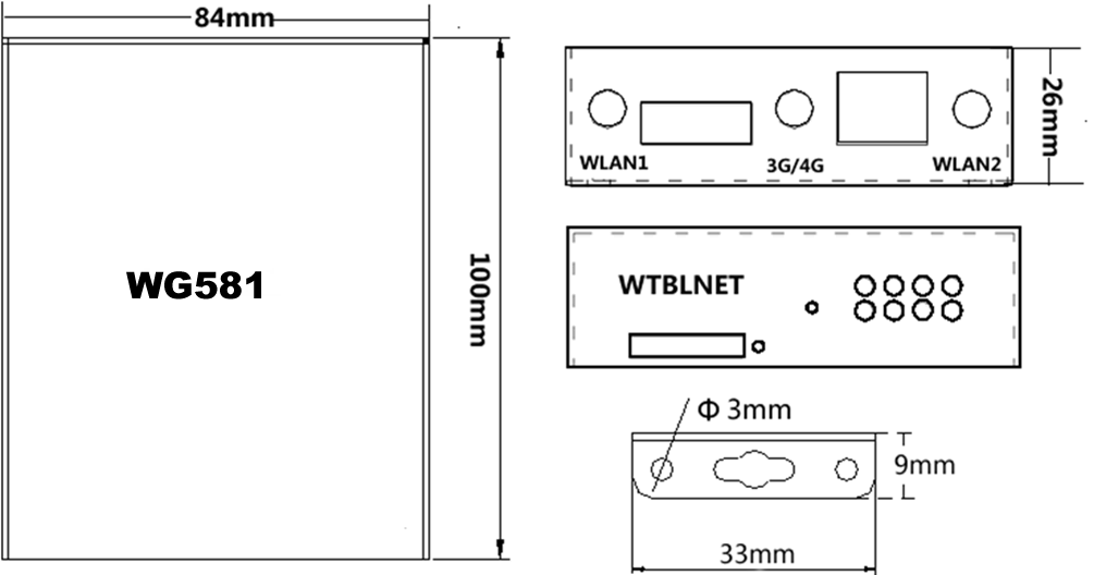 WG581-LL07-MQTT-232: Support 4G CAT4 seven-mode full Netcom, support general MQTT platform, RS232 interface WG581-LQ2S-WMQTT-485: Support 4G CAT1, support Wutong Bolian WMQTT platform, RS485 interface WG581-WLAN-WMQTT -485: Support 2.4G WIFI, support Wutong Bolian WMQTT platform, RS485 interface |