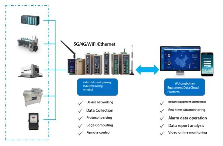 Real-time Monitoring: Enables centralized monitoring and display of various device-collected data, including operational status, start times, runtime durations, processing records, and utilization rates.