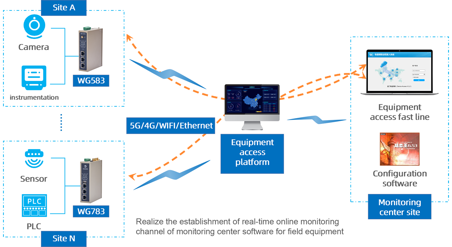 This solution enables the collection of data from charging piles, cameras, electricity meters, and sensors to a remote monitoring platform, facilitating real-time monitoring, fault warning, timely maintenance, and data analysis of charging station equipment nationwide, thereby assisting enterprises in achieving intelligent operation and maintenance (O&M) and operations.
