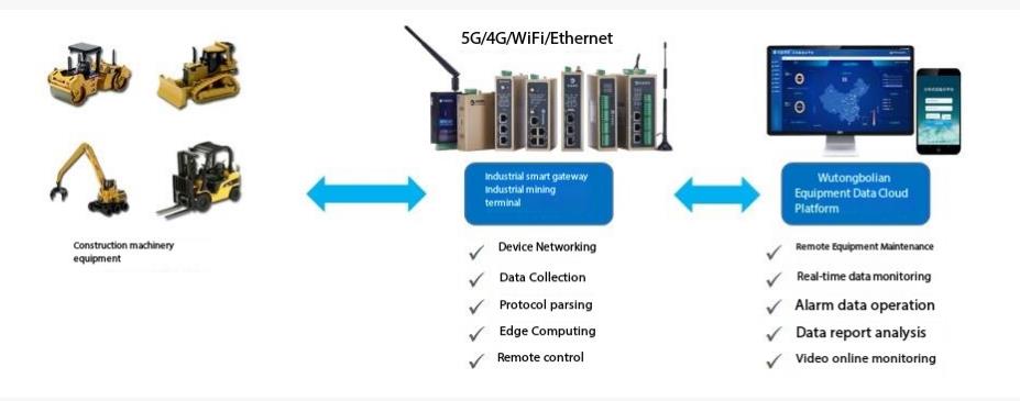 Vehicle-mounted PLCs used in construction machinery, such as excavators, cranes, and concrete pump trucks, enable automated control with advantages including diverse control instructions, convenient operation, and stable and reliable performance.For construction machinery manufacturers, WideIOT provides a solution for data acquisition, monitoring, and maintenance based on industrial smart gateways.