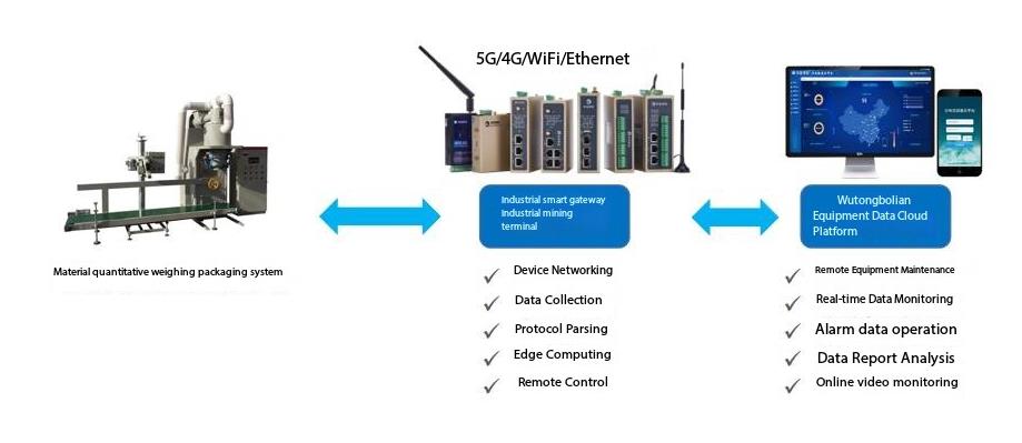 By collecting data from automatic weighing and packaging machines to the cloud platform, real-time monitoring, remote management, and intelligent analysis of production data can be achieved. In this regard, WideIOT (formerly Wutongbolian) offers efficient and reliable IoT solutions to enable data collection from automatic weighing and packaging machines to the cloud platform for monitoring and management, thereby achieving the following functions: