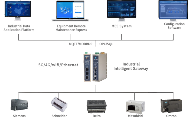 It supports real-time data upload to the WideIOT cloud platform or the user's proprietary system via 5G/4G/WIFI/Ethernet, enabling functions such as data visualization, historical storage, and report analysis. This helps enterprises build digital factories.