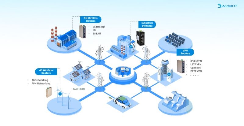 WideIOT industrial routers provide low-latency, high-bandwidth, and secure network access for a large number of on-site devices, facilitating easy deployment and comprehensive management functions to seamlessly interconnect devices.They support various access methods including 5G/4G/3G/WiFi/Ethernet (PPPOE/DHCP/Static IP).