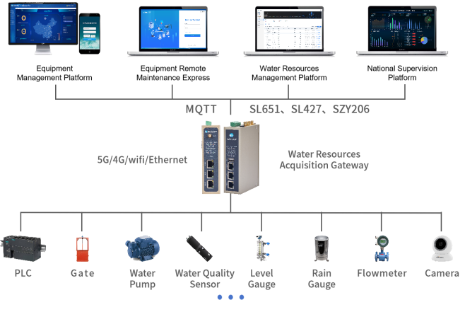 Data Acquisition: Enables data collection from various types of water conservancy equipment to cloud platforms, water conservancy supervision platforms, and other systems