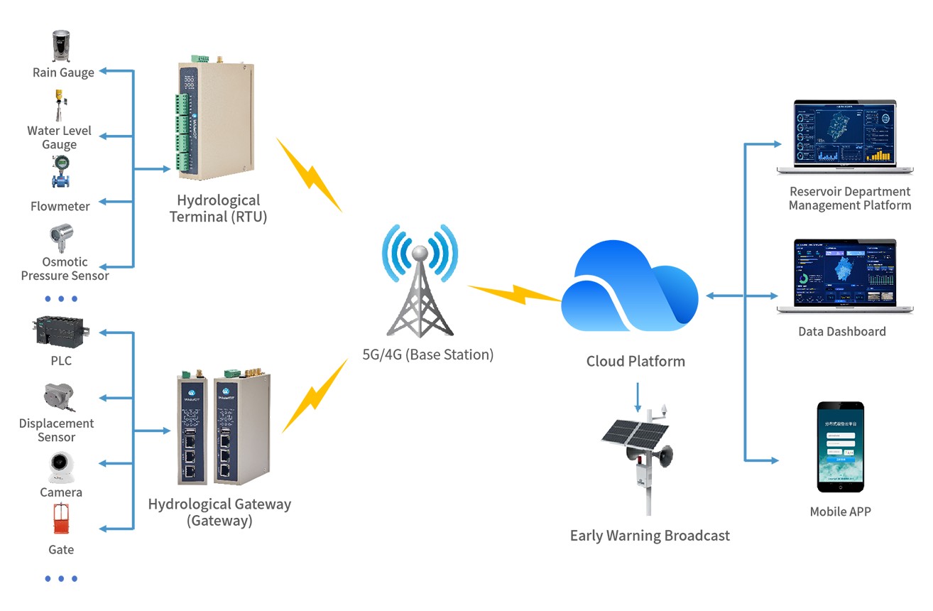 The WideIOT RTU devices are equipped with multiple I/O ports, serial ports, and Ethernet ports, enabling real-time data collection on water levels, flow rates, rainfall, dam deformation, and more. They also provide network access for surveillance cameras, enabling automated data collection in reservoir areas and significantly reducing labor costs and manual workload.