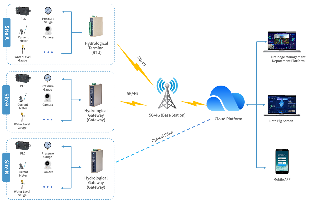 Real-time monitor key parameters such as water level, flow rate, velocity, and water pressure in the pipe network. Quickly configure the data upload cycle to achieve 24/7 all-weather real-time monitoring.