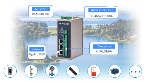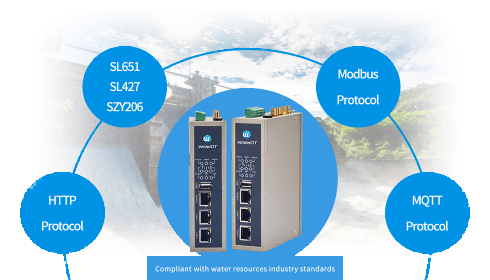 WideIOT Water Conservancy Data Acquisition Gateway complies with water conservancy industry standards. It can connect to various water conservancy equipment, sensors, instruments, IO data, and PLCs, collecting parameters such as water level, flow rate, water quality, gas, and pump station operation status. The data is uploaded to the device management platform via the MQTT protocol and to the water conservancy supervision platform via protocols including SL651, SZY206, and SL427, enabling comprehensive control over the operation of water conservancy systems.