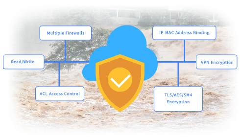 Adopts multiple encryption technologies including firewalls, ACL access control, read/write control, IP-MAC binding, TLS/AES/SM4 encryption, and VPN encryption. Prevents illegal data access and tampering, ensuring data confidentiality and security.
